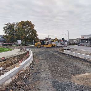 V části ulice od křižovatky u Lidlu k odbočce do ulice Mladská je dokončena aplikace SC pomocí finišeru, recyklace za studena včetně rozprostření grejdrem.