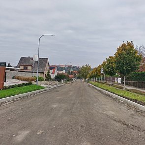 V části ulice Pražská od drogerie TETA k OC Maxi Hit probíhají práce na realizaci nového chodníku. V celé části ulice Pražská byla do ostrůvků doplněna zemina.