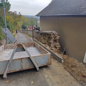 V úterý 21.10.2025 zahájila firma STAVBY Denis s.r.o., postupné odstranění staré rozpadlé zdi včetně odvozu suti.
